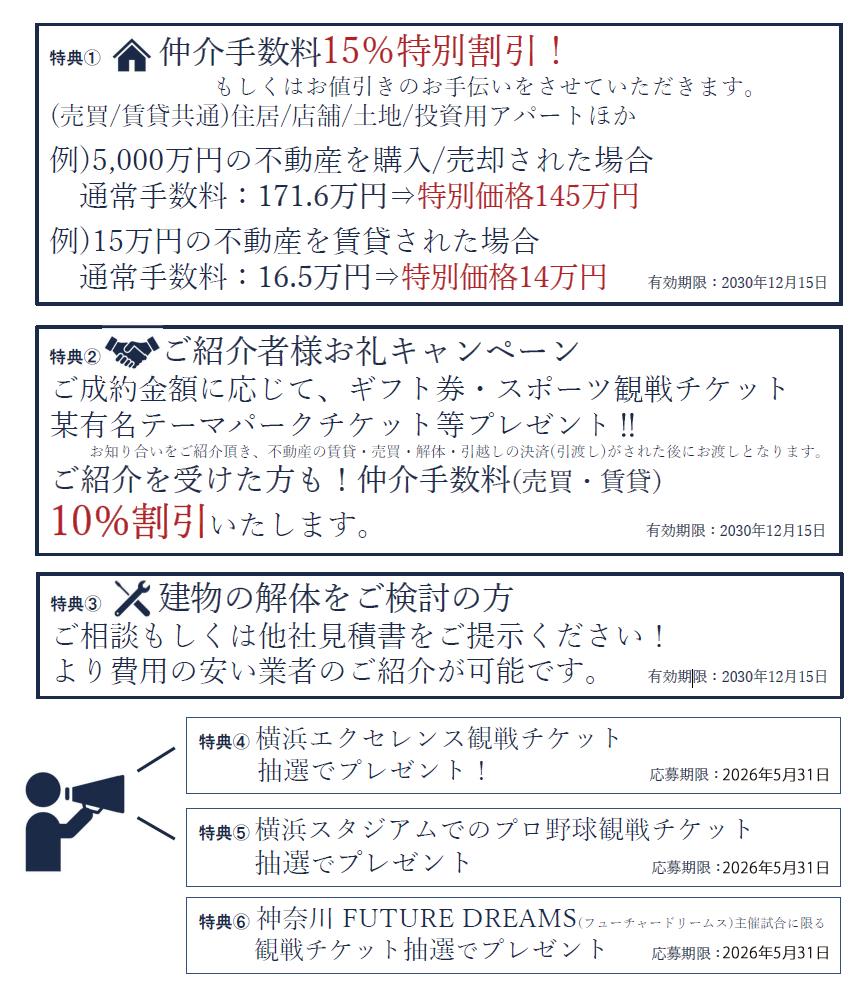 ①仲介手数料15%特別割引!
